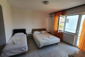 Вила Јадран е лоцирана во мирниот дел на Улцињ, на 350 метри од Големата плажа. На 2 мин. пешачење од вилата се наоѓаат неколку маркети, пекара, слаткарница и разни продавници за сувенири и гардероба. Вилата располага со 1/2, 1/3 и 1/4 студија. Сите соби се комплетно опремени со фрижидер, сопствен тоалет со туш кабина, ТВ, Wi-Fi, клима (вклучена во цената) и балкон. Кујната е заедничка за гостите, но во секоја соба има фрижидер. Вилата поседува соствен паркинг за гостите.